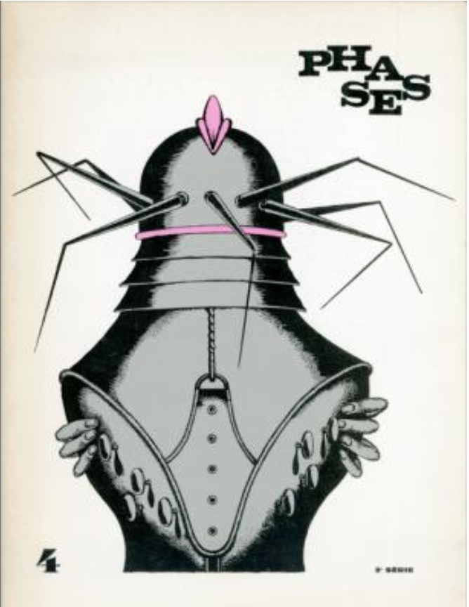 Directed by Édouard Jaguer and with the technical direction of Pierre Alechinsky, the magazine Phases: Cahiers Internationaux de Recherches Littéraires et Plastiques was published in two different series. The first one had eleven issues and it was released between January 1954 and May 1967, and the second series had five issues, published between May 1969 and November 1975. Issue four includes an article on Portuguese Surrealism, with contributions by some artists, such as Alexandre O'Neill, Cruzeiro Seixas, Fernando de Azevedo, Fernando José Francisco, Isabel Meyrelles, José Rodrigues, Laurens Vancrevel, Mário Cesariny, Mário Henrique Leiria, Pedro Oom, and Marcelino Vespeira.